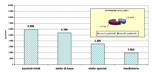 Le visite di medicina generale sono state 5398, quelle specialistiche 3495 e le prestazioni della medicheria sono state 1969.